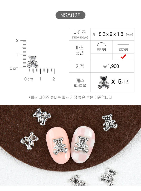 Ezüst színű, macis körömdísz.  5 db Mérete: 8.2 x 9 x 1.8 mm