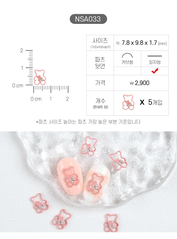 5 db rózsaszín körömdísz. Méret: 7.9 x 9.8 x 1.7 mm