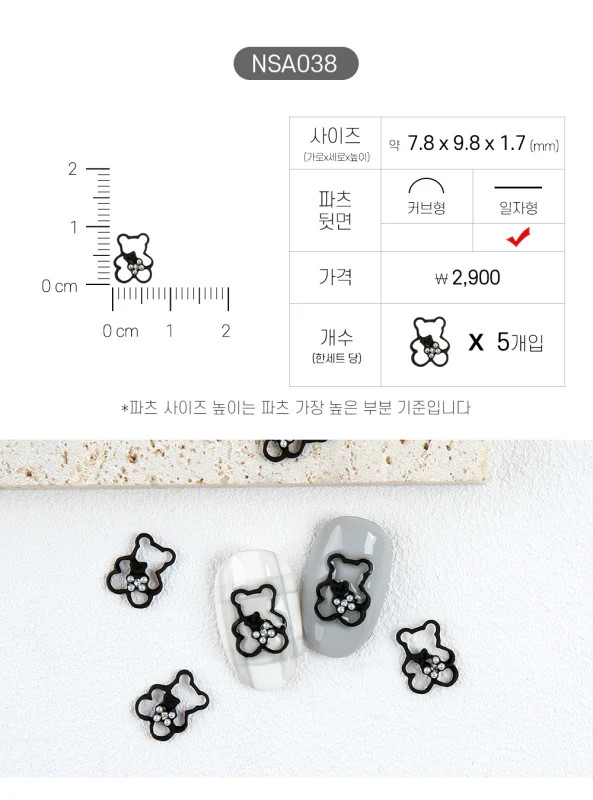 Fekete macis körömdísz. 5 db.   Méret: 7.8 x 9.8x 1.7 mm