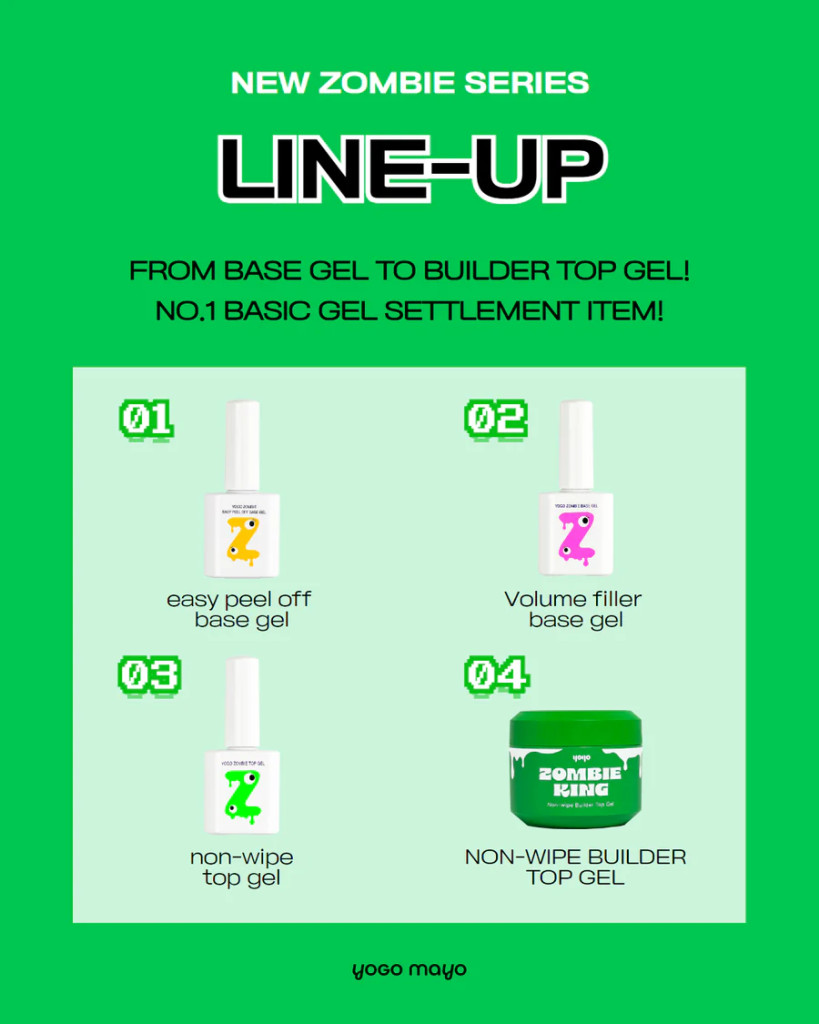 A YOGO Zombie King Builder Top Gel egy prémium minőségű, HEMA-mentes, törlésmentes (non-wipe) zselé, amelyet a YOGO Korea fejlesztett ki. Ez a multifunkcionális zselé ideális választás azok számára, akik tartós, magas fényű és rugalmas záró réteget keresnek.