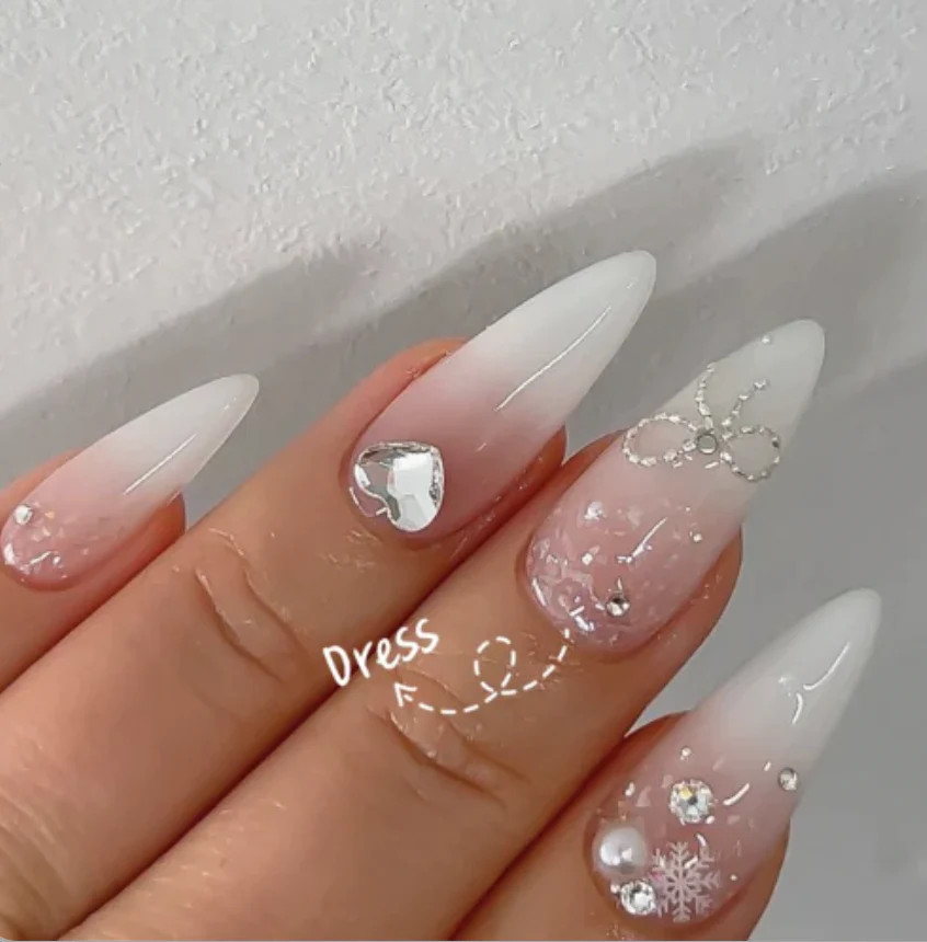 A NailBayo Doi Dress Glitter Gel egy koreai, félig áttetsző csillámos zselé, amely finom pelyhes csillámokat tartalmaz, hasonlóan a hópelyhekhez. Ez a zselé ideális rétegezéshez vagy finom átmenetek létrehozásához, és könnyen alkalmazható, még kezdők számára is.